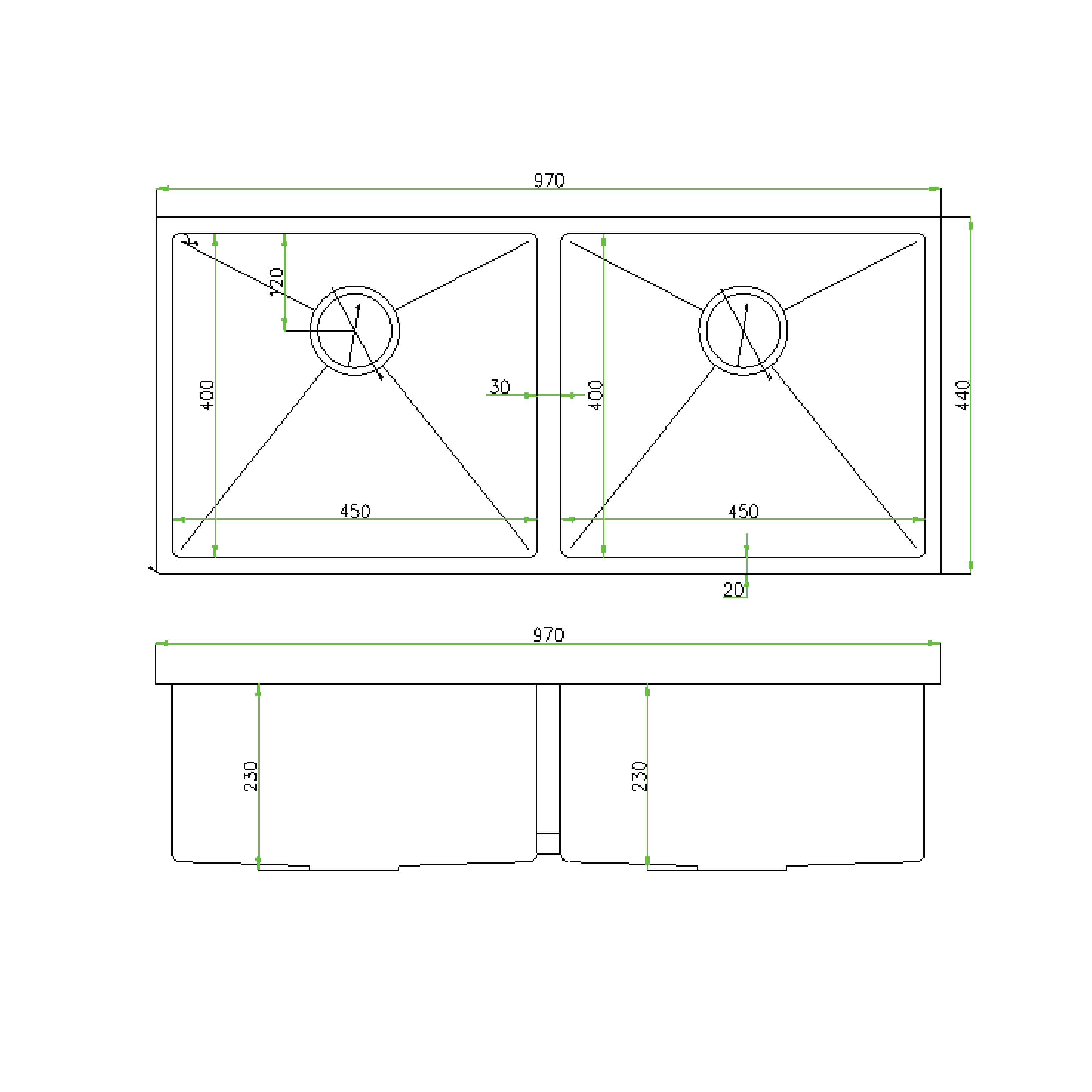 L970xW440xH230mm